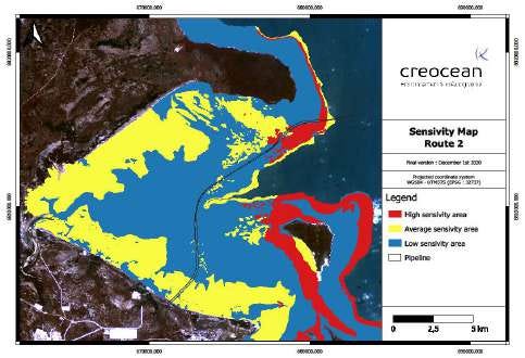The documents present a clear but troubling picture. When the project was originally proposed by the US firm Anadarko, the plan was to build the gas pipelines along a relatively direct route from the offshore fields to the onshore processing plant. However, subsequent studies of the local marine environment — included as habitat maps in the documentation — revealed that Palma Bay is completely boxed in by areas qualifying as ‘critical habitat’, mostly coral reefs.
